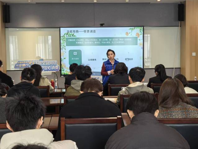 随后,兴业银行金融讲师黄颖开展专题授课,围绕金融诈骗当前形势、常见诈骗类型、基础金融知识科普等核心内容展开讲解。授课中,黄颖结合全国大学生金融诈骗相关调查数据,点明电信诈骗、校园贷、钓鱼网站为校园高发诈骗类型,并通过典型案例解析骗局作案手法,讲解不良校园网贷辨识方法,同步普及金融消费者八项权益、个人征信维护、存款保险等金融知识,帮助学生建立系统的金融安全认知。